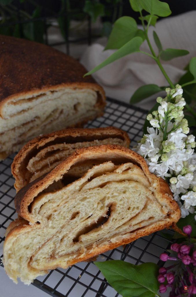 Se lasă la dospit, acoperit cu folie alimentară, până își dublează volumul, apoi se unge cu unt topit și se coace în cuptorul încins, la 170° C, circa 50 de minute.